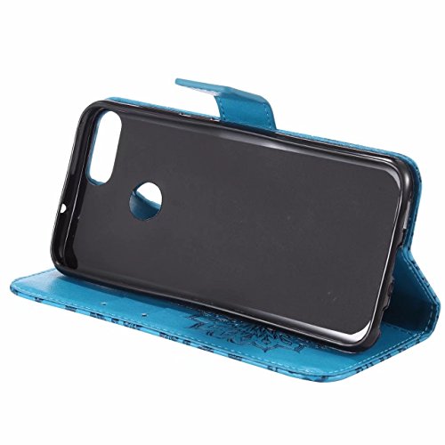 Laybomo Huawei P Smart Custodia PU Pelle Portafoglio Morbido TPU Silicone Magnetico Protezione Flip Cover Custodia per Huawei P Smart con Slot per Scheda ID, Fiore in Rilievo (Blu)