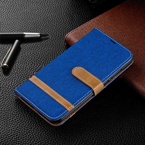 Laybomo per Xiaomi Redmi Note 7 Custodia Pelle Stile Jeans Portafoglio Morbido TPU Silicone Magnetico Protezione Flip Cover Custodia per Redmi Note 7 con Porta Carte di Credito (Blu)