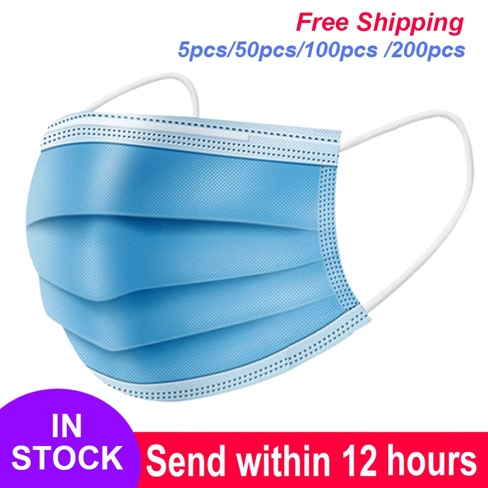 100 Pcs 3 Layer Disposable Medical Mask Non-woven Dust Face Mask Thickened Disposable Mouth Mask Dust Filter Safety Sugical Mask