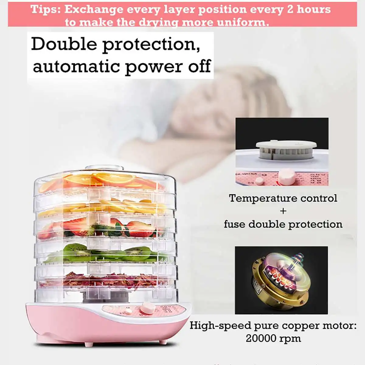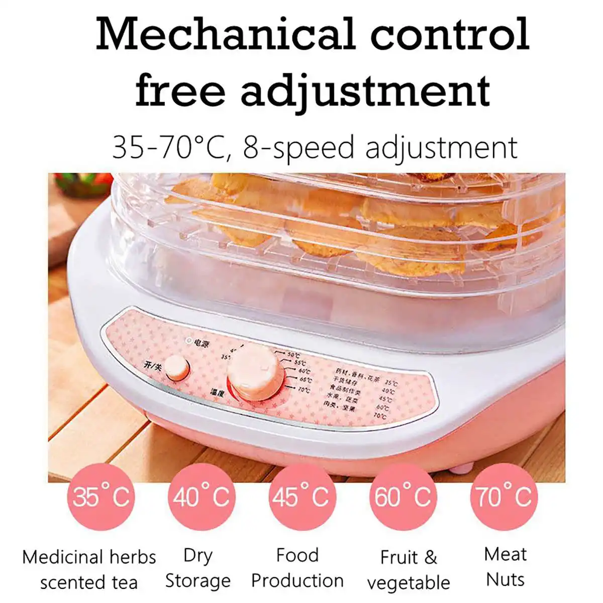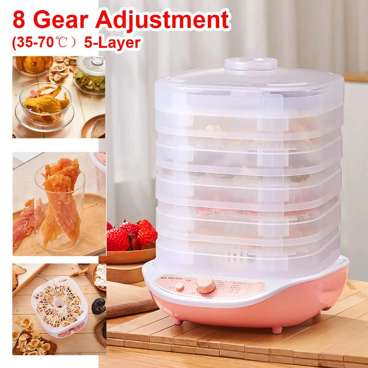 5 Layers Food Dehydrators Fruit Vegetable Herb Meat Drying Machine Snacks Dryer Household Food Grade PP Dehydrators 8 Speeds