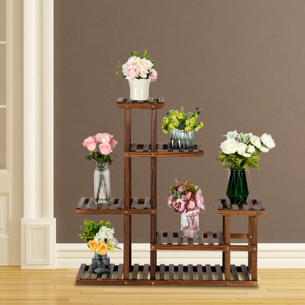 5 Layers Modern Flower Stand Rack Wood Shelf Garden Office Carbonized Display Instruments Pot Storage Rack Gardening Tools