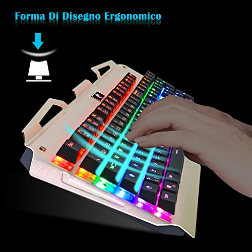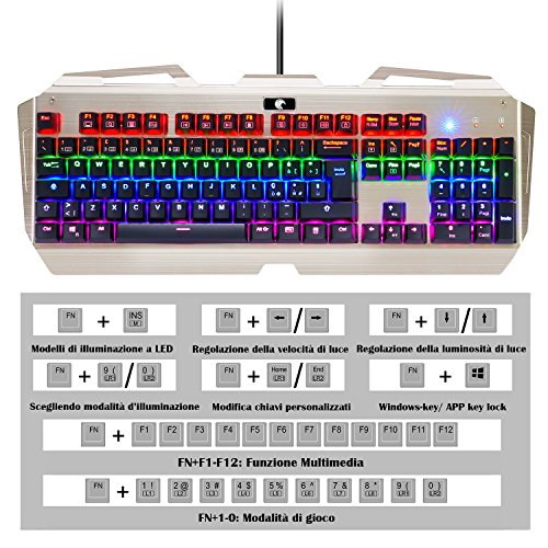LAYOUT ITALIANO - Tastiera Meccanica Gaming KingTop 104 Tasti Meccanici Blu 100% Anti-ghosting Layout Italiano Tastiera Italiana Retroilluminata Regolabile Tastiera Da Gioco Con Winlock Per Gaming Giocatori e Lavoratori- Nero Oro