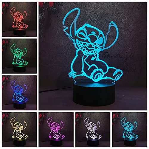 Laysinly 3D LED Night Light per Ragazzi Stitch Kid Telecomando USB Touch Cable Batteria 16 Cambiamenti Colore Illusione Scrivania Lampada Da Tavolo Cartoon Comodino Decor