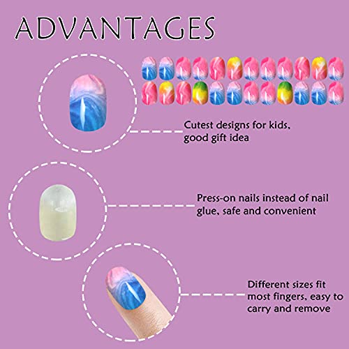 Laza - Kit per unghie premute per bambini, 120 pezzi, con brillantini, colori sfumati, arcobaleno, scintillanti, a forma di farfalla, a forma di onda, corte, per bambine e ragazze