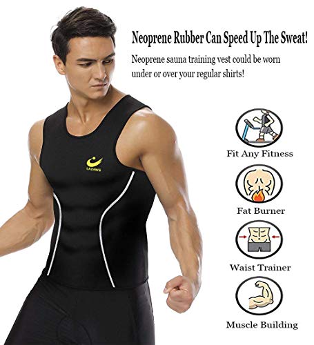 LAZAWG Canotta Dimagrante Gilet da Sauna per Uomo Snellente Vita Trainer Neoprene Hot Sweat Tank Top Senza Cerniera Controllo Pancia Perdita di Peso Bruciagrassi per Allenamento Fitness Palestra Nero