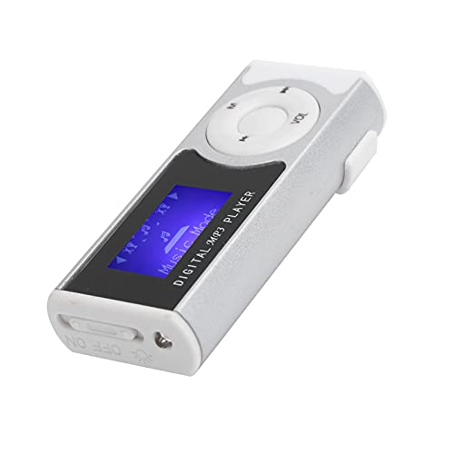 Lazimin Lettore musicale MP3 portatile con display LCD, torcia posteriore clip LCD, lettore multimediale (argento)