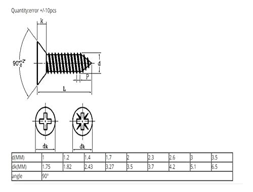 LAZIRO Viti a Testa Piatta Viti autofilettanti Nichelatura M1 M1.2 M1.4 M1.7 M2 M2.3 M2.6 M3 M4 Viti Viti KA (Size: M2X6 1000pcs)