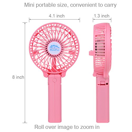 LAZU Mini Ventilatore USB Portatile Batteria Ricaricabile Pieghevole Ventilatori Portatili per Auto, Casa Ufficio, Computer, Laptop PC, Scrivania Tavolo, Viaggiare (Rosa)