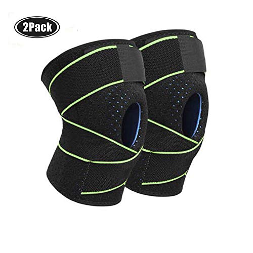 Lazzon Ginocchiera Ortopedica Menisco Rotula Tutore per Ginocchio Legamenti Crociati Regolabile Supporto Fascia Sportiva (Verde (2PCS))