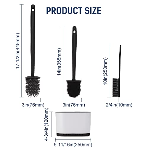 LBSYSLB Scopino per WC,spazzola in silicone, setole flessibili, pulizia profonda del pavimento e scopino da parete,scopino multifunzione nero per bagno,tre spazzole per WC