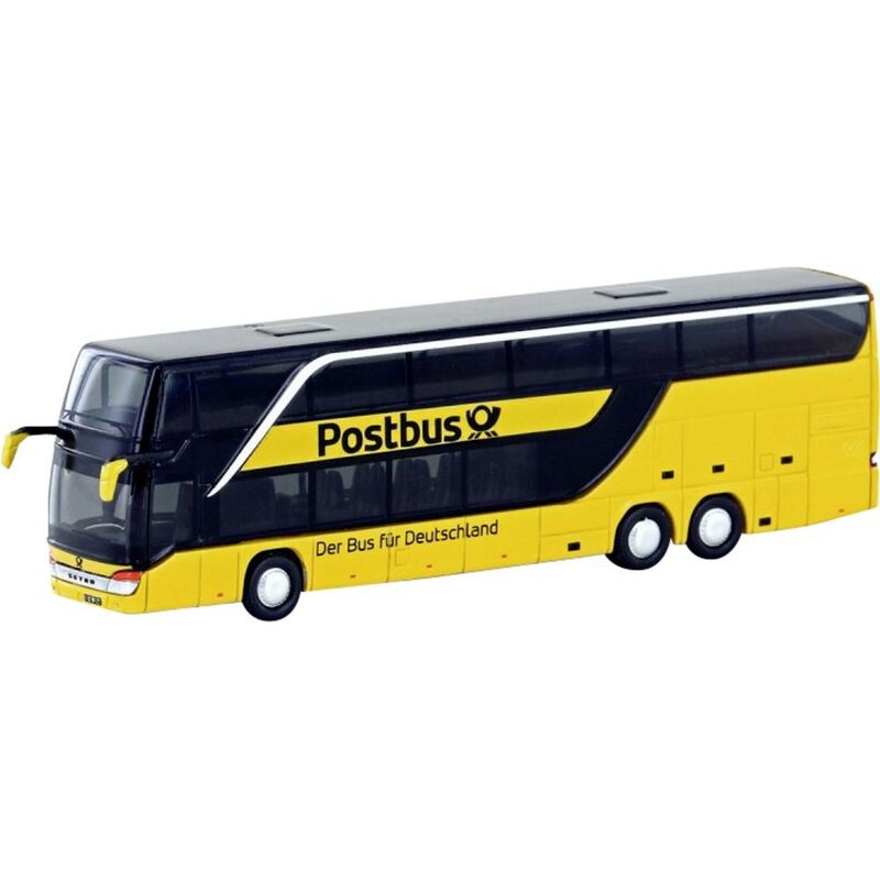 Dettagli tecnici Classe di età da 15 anni Dimensione di costruzione N Modello S 431DT Postbus Tipo (veicoli modellismo ferroviario) Bus modello Lunghezza: 89,6 mm N Setra S 431DT Postbus Il modello S 431 DT è un bus a due piani del marchio Setra, prodotto da Evobus dal 2002. È l'unico modello a due piani della classe TopClass 400 di Rheie. nel 2013 ne è stato uno Manutenzione del modello, in cui il veicolo è stato principalmente sottoposto a una revisione tecnica e è stato introdotto un motore Euro 6. Inoltre è stato introdotto un nuovo cockpit. Daimler fornisce fino a giugno 2015 un totale di 2500 veicoli in dotazione. Il veicolo è stato costruito presso lo stabilimento Stra di Neu-Ulm un Stra S431 DT costa circa 470.000 euro, a seconda dell'equipaggiamento. Il S431 DT ha acquisito importanza anche grazie al commercio di bus a lunga distanza in forte crescita. Testo tradotto automaticamente Note Modellini in scala e fedeli agli originali per collezionisti adulti! In caso di versione