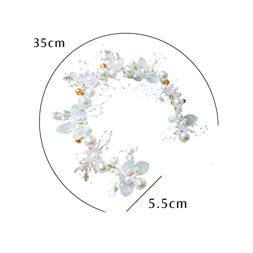 LCFT Cerchietto con Fiori Perle, Copricapo da Sposa, Fascia per Capelli con Fiore Diadema di Perle Accessori per Capelli Prima Comunione Copricapo da Sposa con Perle per Ragazze e Damigella d'Onore