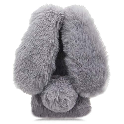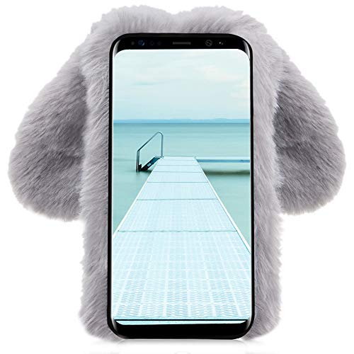 LCHDA Cover per Samsung Galaxy S6, coniglio in pelliccia grigia, carina, Kawaii 3D, per orecchio, protezione invernale, calda, morbida, pelosa, motivo morbido in silicone, antiurto, anti polvere,