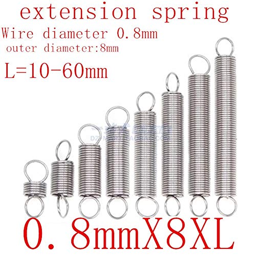 Lchg-ui Molle a trazione 5Pcs Wire Dia 0,8 Millimetri in Acciaio Inossidabile 304 Doppio Gancio Piccolo Tensione della Molla Accessori Hardware Esterno del Diametro 8mm Lunghezza 20-50mm, Primavera d