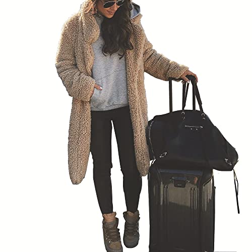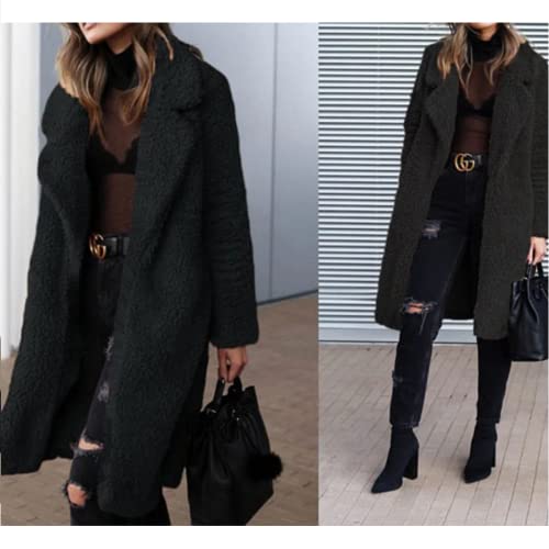 Lchongzhuo Soprabito da Donna Warm Fuzzy Fleece Risvolto Aperto Davanti Lungo Cardigan Cappotto Casual Warm Teddy (L,A)