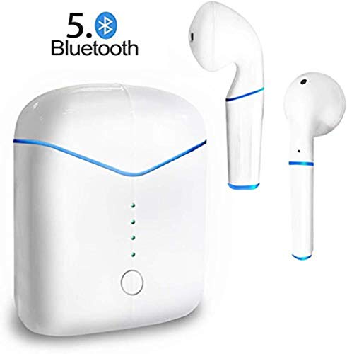 LCluckyml Cuffie Bluetooth 5.0, durata di funzionamento 25 ore, in-ear IPX5, impermeabili, cuffie wireless e doppio microfono per Android (bianco)