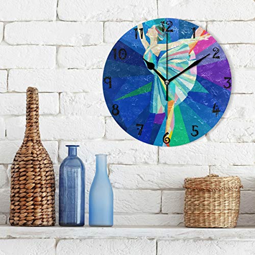 LDIYEU Astratta Danza Bellezza Orologio da Parete Silenzioso Decorazione Non Ticchettio Legna Orologio per Ragazzi Ragazze Capretto Cucina Camera da Letto Home Office Scuola Decor