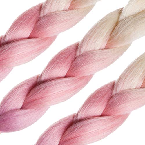 LDMY, Kit di extension per capelli intrecciate, colore biondo, rosa e viola sfumati, ca. 60 cm di lunghezza, 100 g/pz, in fibra sintetica (6 pz/confezione, 19)