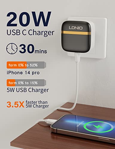 LDNIO Caricatore USB C Rapido 32W, 3 Porte Caricabatterie USB C con PD 20W e QC 18W Caricatore Type C con Adattatore Presa EU/UK/USA, Compatibile per iPhone 14/13/12, Galaxy S22/S21, iPad etc