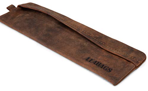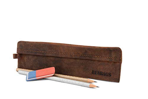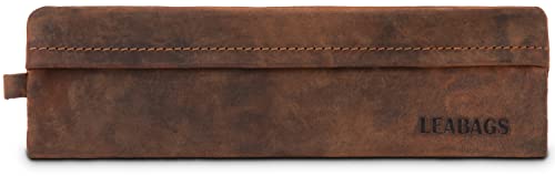 LEABAGS Astuccio in Pelle | Piccola Custodia in Vera Pelle | Astuccio per Lavoro Università Scuola | Astuccio per Matite e Penne | Dimensioni S | Vintage Marrone-Rosso
