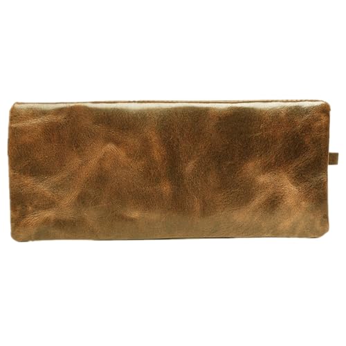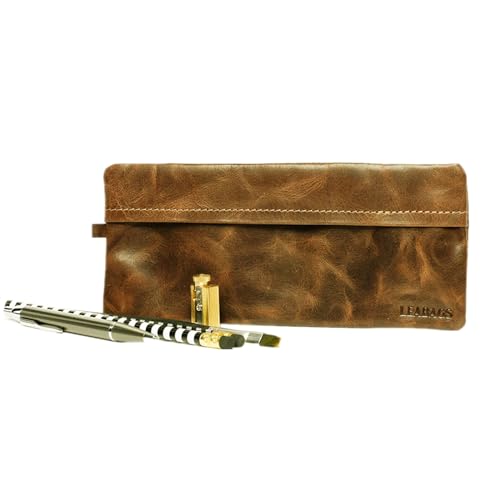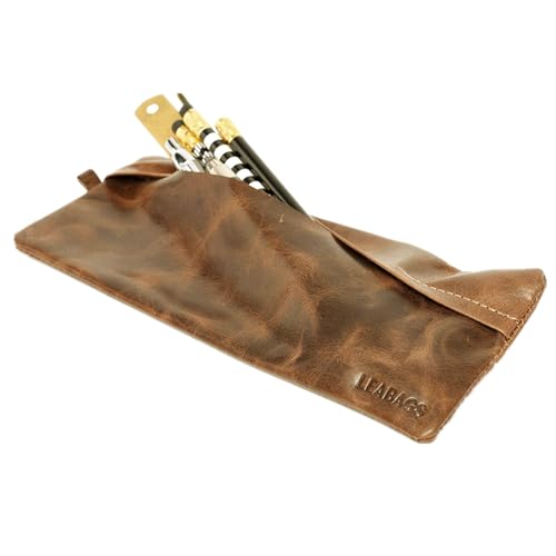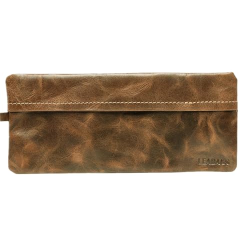 LEABAGS Astuccio in Pelle | Piccola Custodia in Vera Pelle | Astuccio per Lavoro Università Scuola | Astuccio per Matite e Penne | Dimensioni L | Fox