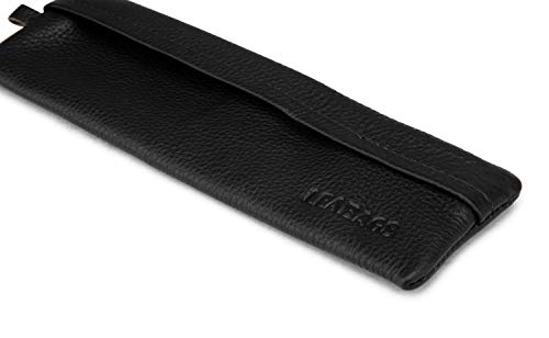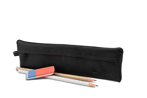 LEABAGS Astuccio in Pelle | Piccola Custodia in Vera Pelle | Astuccio per Lavoro Università Scuola | Astuccio per Matite e Penne | Dimensioni S | Nappa Nera