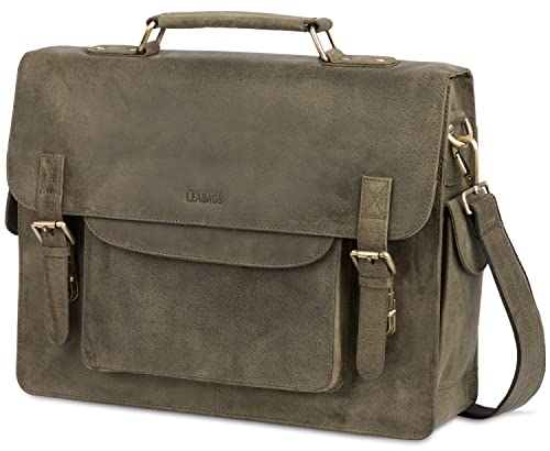 LEA - LEABAGS Bern cartella vintage in vera pelle di bufalo- Oliva