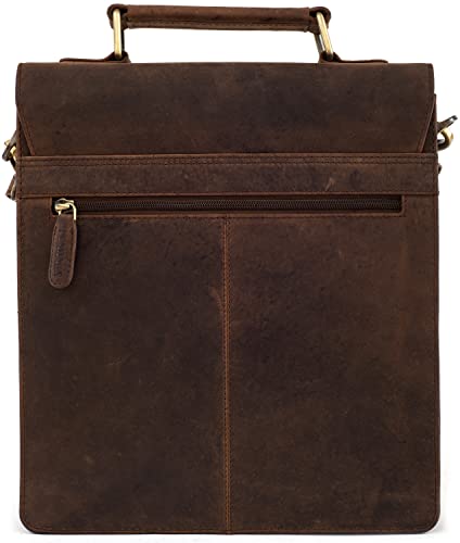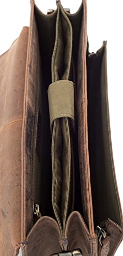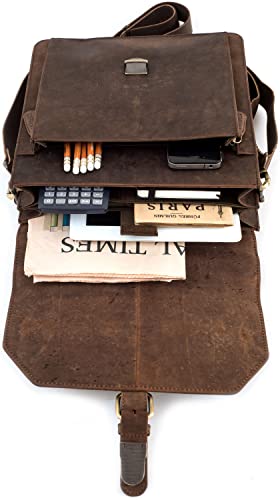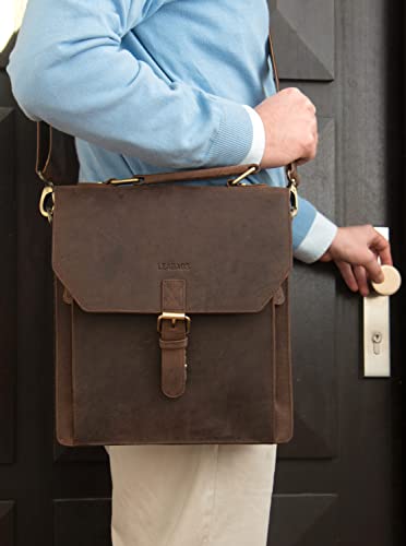 Leabags Borsa a Tracolla in Pelle per Uomo e Donna | Borsello Messenger con Tracolla | Borsa da Lavoro | Borsa da Trasporto | Borsa a Mano | 15 Pollici | Vera Pelle | Natura Marrone Scuro