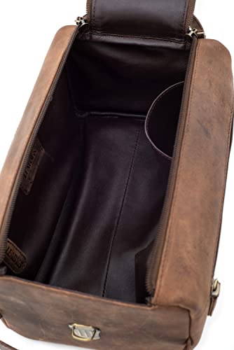 Leabags Grande Borsa da Toeletta in Pelle Premium per Uomo e Donna | Beauty Case, Porta Trucchi, Organizer da Viaggio | Spaziosa Trousse da Trucco | Borsa da Lavaggio | Marrone Chiaro Naturale