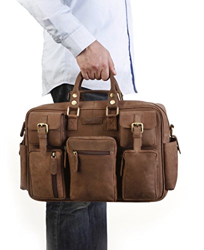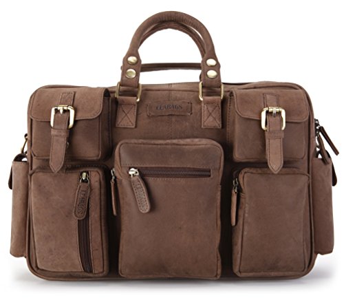 LEABAGS Houston cartella vintage in vera pelle di bufalo - Noce moscata