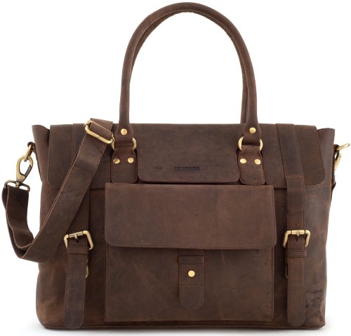 LEABAGS Jersey borsa da donna vintage in vera pelle di bufalo - Noce moscata