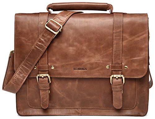 LEABAGS Omaha cartella vintage in vera pelle di bufalo -CrazyVinkat