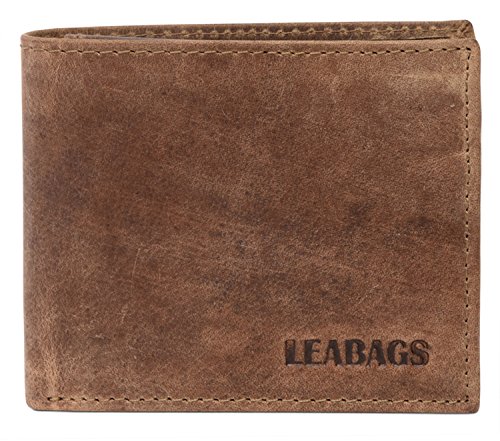 LEABAGS Portafoglio in Pelle da Uomo | Protezione RFID | Formato Orizzontale | Tasca per Monete | 11 Scomparti per Carte | Cucitura Rinforzata | Grigio-Marrone Vintage