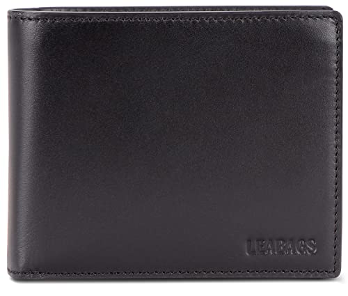 LEABAGS Portafoglio in Pelle da Uomo con Protezione RFID | Formato Orizzontale | Portamonete con Scomparto per Monete | 11 Scomparti per Carte | Cuciture Rinforzate | Nappa Nero