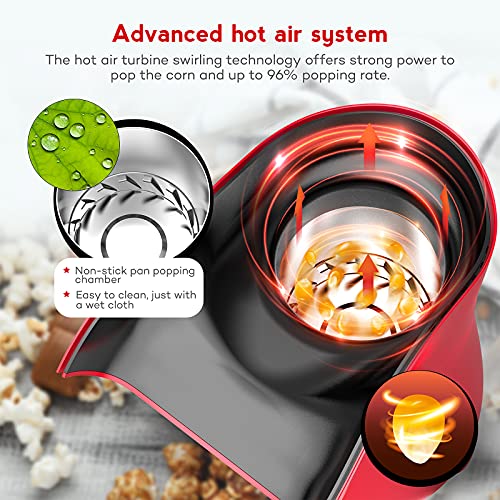 Leadpo Home Popcorn Maker - Macchina per popcorn ad aria calda senza BPA, 96% Popping Rate 2 minuti rapido popcorn elettrico popcorn con misurino e coperchio rimovibile