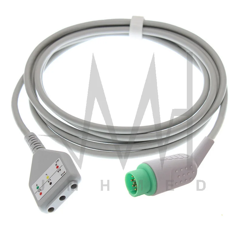 12P to 3 Leads ECG EKG Trunk Cable for Biolight M7000,M8000,M9000,M9500 Patient Monitor, AHA or IEC Din Style Extension Cord