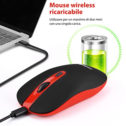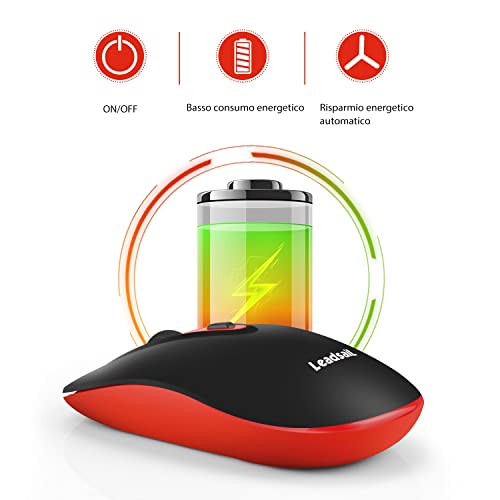 LeadsaiL Mouse Wireless Ricaricabile, Mouse Ottico Mini Silenzioso con Clic Mute, Ergonomic Mouse Senza Fili 2,4G con Nano Ricevitore, Cavo USB, 2400 DPI Mouse USB - Rosso