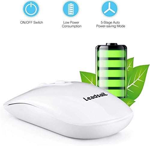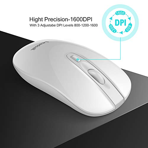 LeadsaiL Mouse USB wireless silenzioso 2,4 G per PC portatili senza fili, mouse ottico silenzioso e a risparmio energetico, 1600 DPI con 3 livelli regolabili per Windows 8/10/XP/Mac/Macbook Air/Linux
