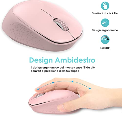 LeadsaiL Mouse Wireless, Silenzioso Mouse Senza Fili per PC Portatile, Ergonomico 2,4 GHz USB Mouse, 1600 DPI, Compatto, Smooth Tracking per Chromebook, Mac, Computer, Notebook - Rosa