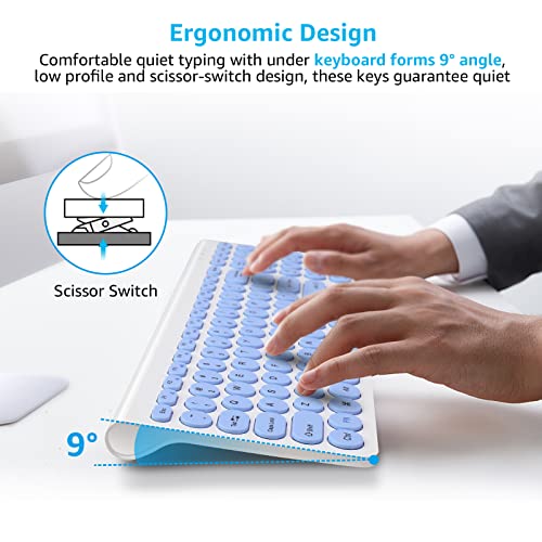 Design sottile ed ergonomico: la tastiera sottile ha un angolo di inclinazione per una grande posizione di digitazione. Il mouse wireless resistente al sudore, delicato sulla pelle in forma sagomata offre ore di lavoro comodamente. Il tipo di tastiera compatto veloce con tastierino numerico e accesso istantaneo alla tua musica, Internet, e-mail, volume, ecc tramite tasti di scelta rapida multimediale.