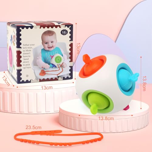 【Giochi Montessori per Neonato】 C'è un sonaglio incorporato che i bambini possono scuotere per produrre piacevoli suoni squillanti. Il bambino può anche divertirsi senza fine spremendo le bolle di silicone colorate, coinvolgendo i bambini nell'esplorazione sensoriale, promuovendo il loro sviluppo visivo e uditivo, la coordinazione occhio-mano e le capacità motorie generali.