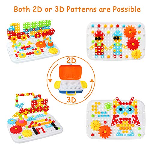 LEADSTAR Mosaico per bambini, puzzle 3D, giochi Montessori da costruzione, 276 pz fai da te per bambini giocattolo Montessori gioco kit educativo creativo con trapano elettronico per bambini ragazza