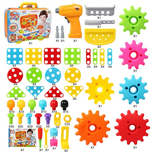 【NOTA】 Il gioco di costruzione ha piccole parti, non adatto a bambini sotto i 3 anni, i bambini di età superiore ai 3 anni devono giocare sotto la supervisione di un adulto! Il pacchetto include trapano elettrico (batterie non incluse), cacciavite, pannelli a mosaico, viti ABS e chiave, trapani, schede, pannello perforato e così via in una scatola di immagazzinaggio a forma di bus.