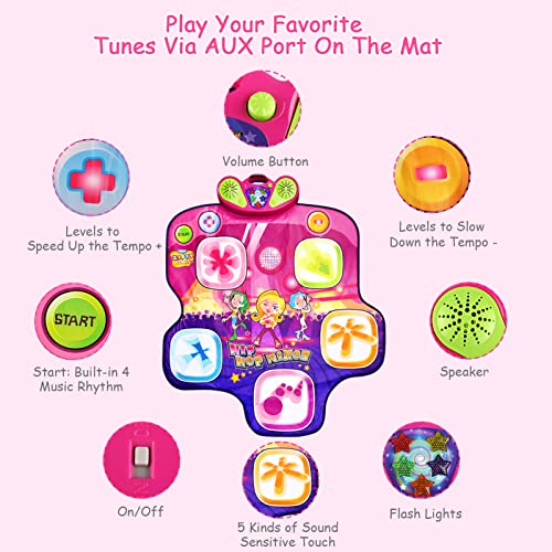 LEADSTAR Tappetino da Ballo,Tappetino da Gioco con Luci LED,Volume Regolabile,Musica Integrata,Tappeto Danza Giocattolo per Bambini,Giochi di Compleanno di Natale Giocattoli Regalo per Ragazze