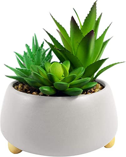 Leaf Fioriera in ceramica con pianta artificiale, pianta grassa singola, bianco ciottolo, 15 cm