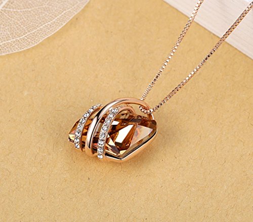 Leafael Collana con ciondolo Wish Stone con cristallo birthstone marrone ambra per novembre, placcato oro rosa 18 carati, catena da 18 "+ 2"