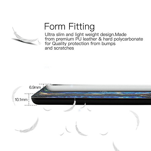 La custodia per iPad Air 2 è realizzata in pelle ecologica in poliuretano all'esterno e in microfibra all'interno. Il design ultra sottile e leggero della parte posteriore rigida offre il minimo ingombro e protegge il tuo dispositivo.