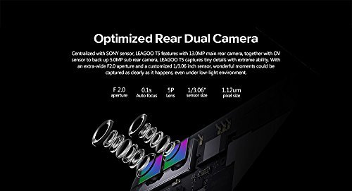 Leagoo T5 4G cellulare Phablette 5.5 Pouces smartphone FHD Ecran Android 7.0 MTK6750T Octa Core 1.5GHz 4GB RAM 64GB ROM 13.0MP + 5.0MP Doppio camerista posteriore Scanner GPS (nero)