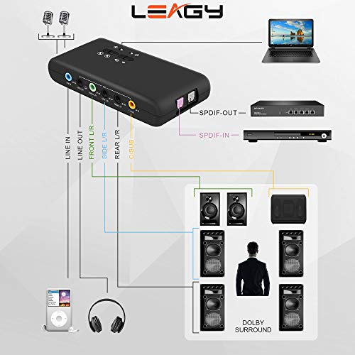 LEAGY Scheda Audio USB Esterna DTS Dolby 7.1 Compatibile Win 8 uscite, 2 x Mic in,Registrazione e Riproduzione contemporanea, 1x SPDIF in e out, Line in e Line out Jack da 3,5mm