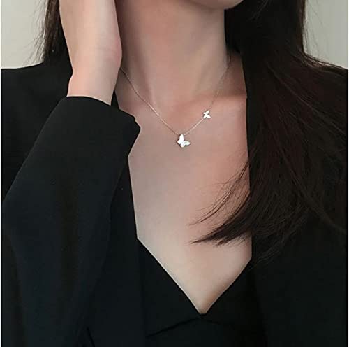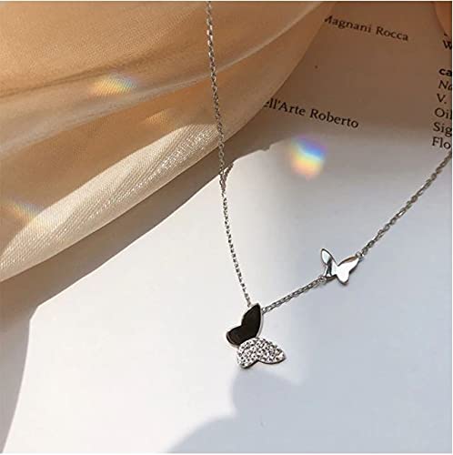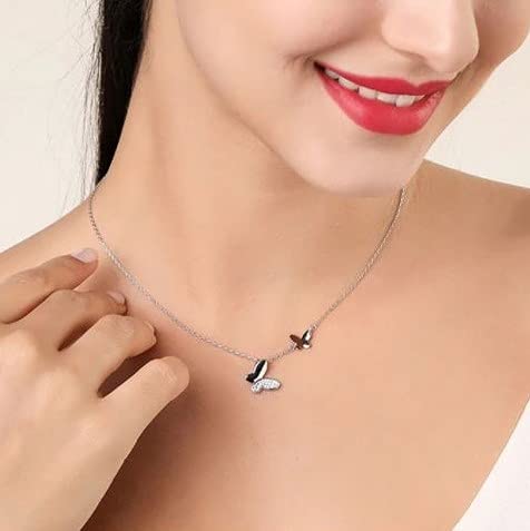 Collana da donna in argento Sterling 925 con due farfalle e zirconi, motivo clavicola